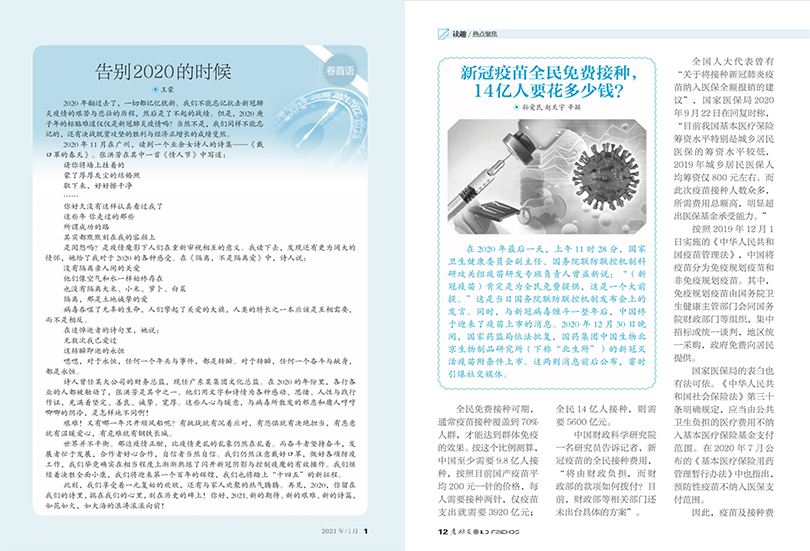 主要栏目:卷首语、特别关注、大视野、大历史、大健康、大家乐等。